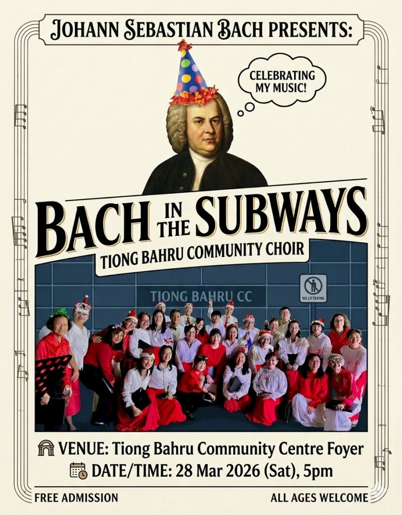 Born from a shared love of music during the quiet days of 2021, the Tiong Bahru Community Choir is proud to be Singapore’s first neighborhood vocal ensemble. What began as a way to stay connected during the pandemic has grown into a vibrant family of residents and volunteers. From festive celebrations to local stages, we love bringing our community together through song. This March, join us for a very special milestone as we make our debut in Bach in the Subways!